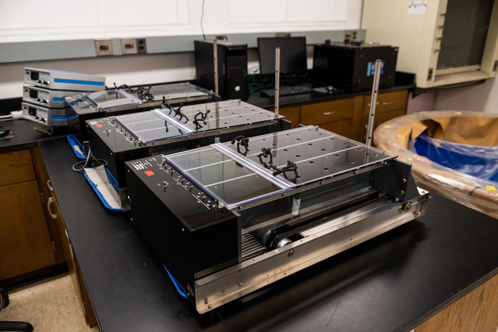 Treadmills are used with an animal model to test the effects of exercise on Parkinson’s symptoms and pathology.
